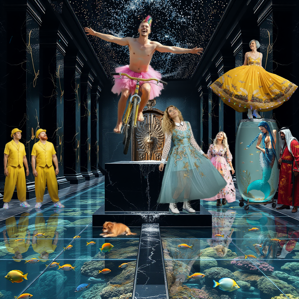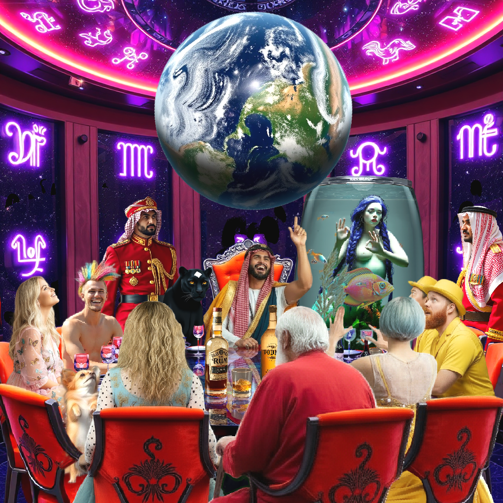 - Plot: On a near future dystopian Earth, the elite hunt plebs for fun. A team of hunters suffer a fatality, prompting remaining members return to base, except one who decides to look for more fun in the pleb city. After an encounter with the fabric of cosmic consciousness, he ends up at a marina, where he causes a massacre. This is subsequently investigated by two volunteer detectives. Two mute lesbian plebs plot to exterminate the elite with a doctored virus that only kills humans that eat a lot of caviar. An Irish member of the elite buys himself the title of King of Abdul City. He plans to send his three sons away from exploited Earth to become custodians of another goldilocks planet, using spaceship Pendulum that is designed by his paralysed genius son Kieran. The two detectives follow a trail to Abdul City, whilst spacetime manipulator Fi plans to pay a visit to the Pacific Ocean. Several interlinked story lines follow various characters, amongst which a wannabe actress, a talking cybhuahua (cyborg chihuahua), a horny mermaid, a drag prince, mute lesbians, a paralysed genius prince and Omar, the self-serving PA of the fake king, until they all find themselves as passengers on the Pendulum.